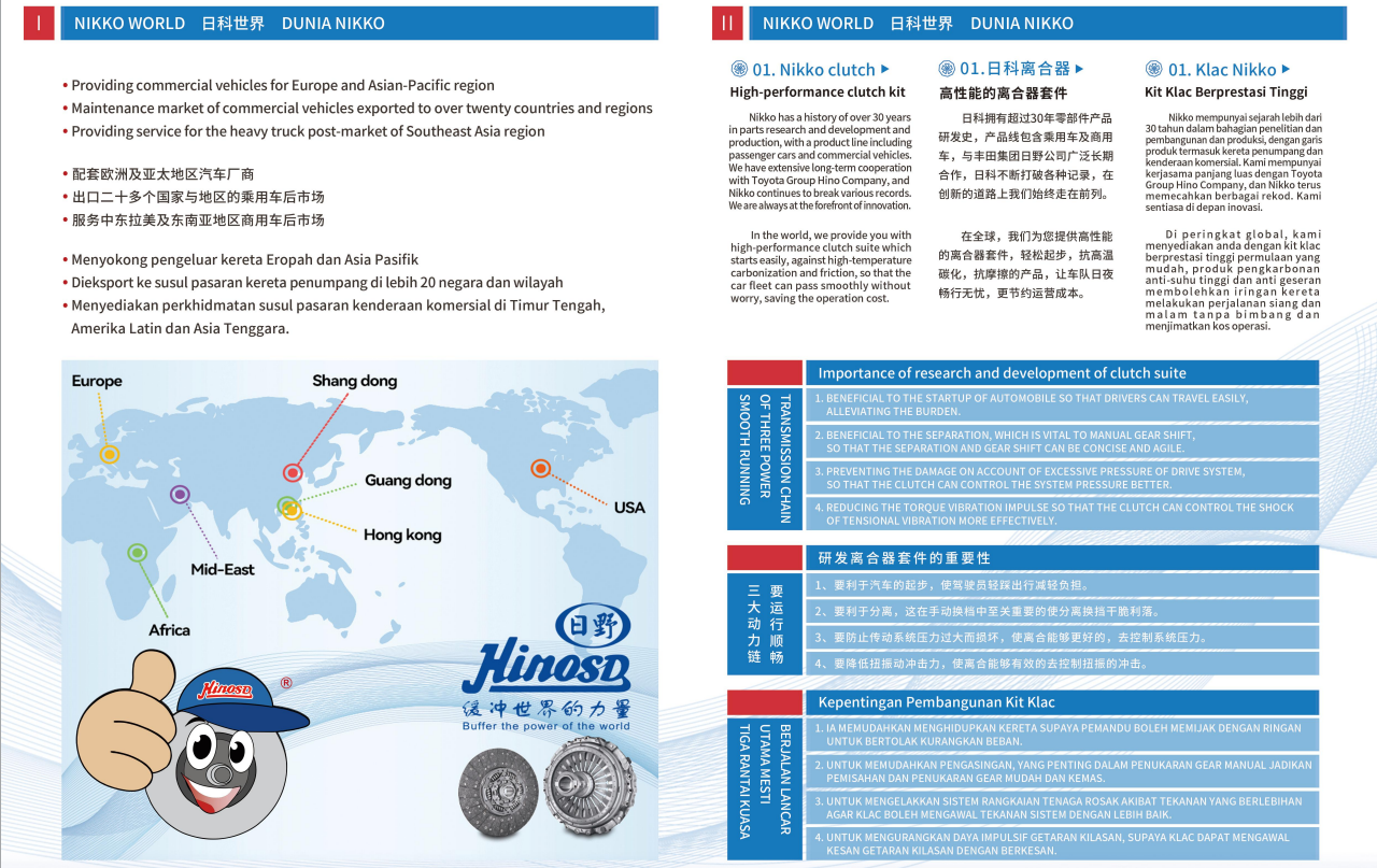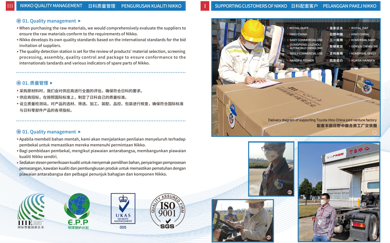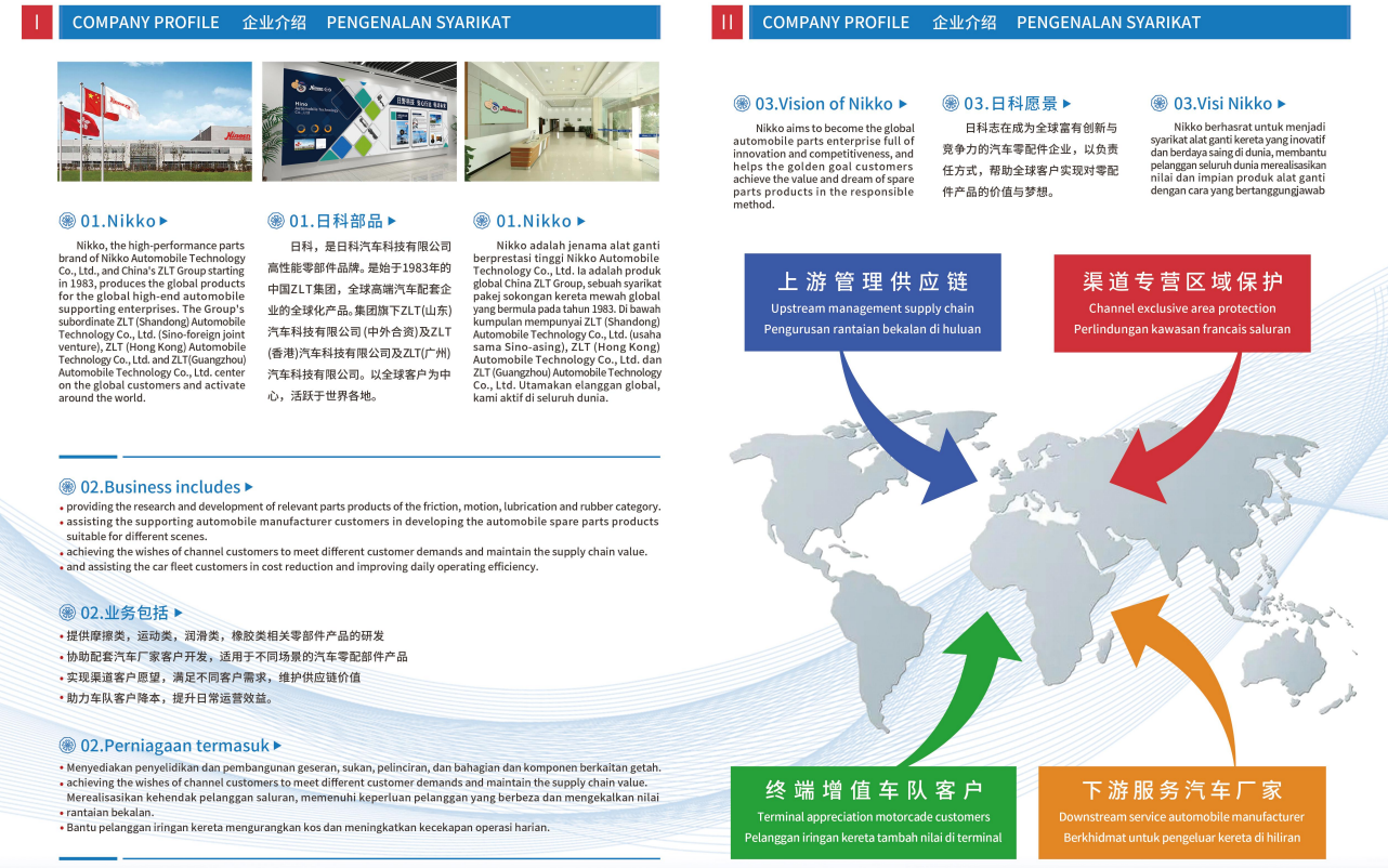 日科部品,是日野汽车汽车科技公司高性能重卡零部件品牌。是始于1983ZLT集团全球高端重卡配套企业的全球化产品,集团旗下日野(山东)汽车科技有限公司(中外合资)及日野 (HK)汽车科技有限公司及广州贸易代表处。以全球客户为中心,活跃于世界各地,是香港主要的家族所有制汽车技术公司之一。主营业务:提供部品开发传动类,运动类,润滑类,橡胶类相关部品恊助主机配套客户研发适用于不同运输场景的重车用零部件产品实现渠道愿望满足不同客户需求,维护经销商价值日科愿景:日科是一家全球化的摩擦类,运动类,橡胶类,润滑类的商用车零部件产品配套供应企业,我···